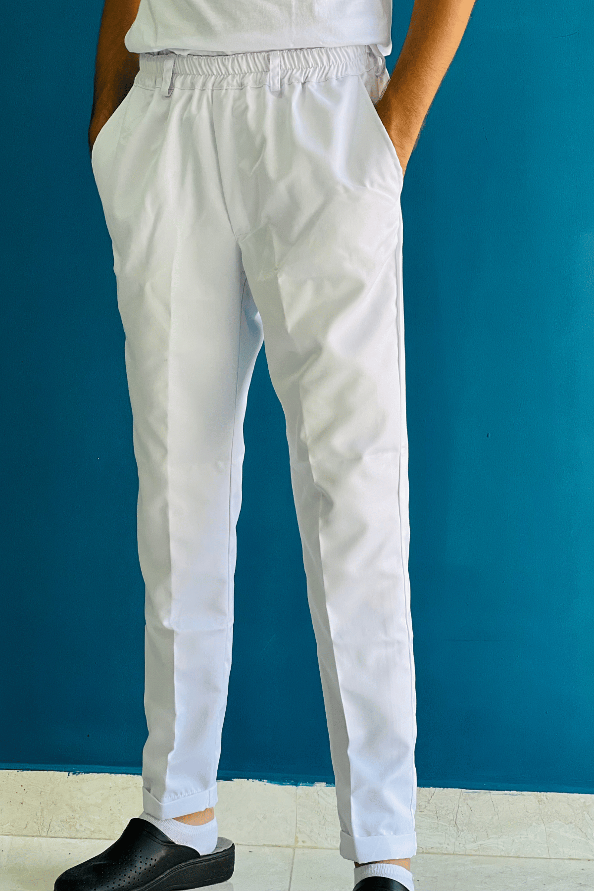pantalon chef blanc avec revers Taille S